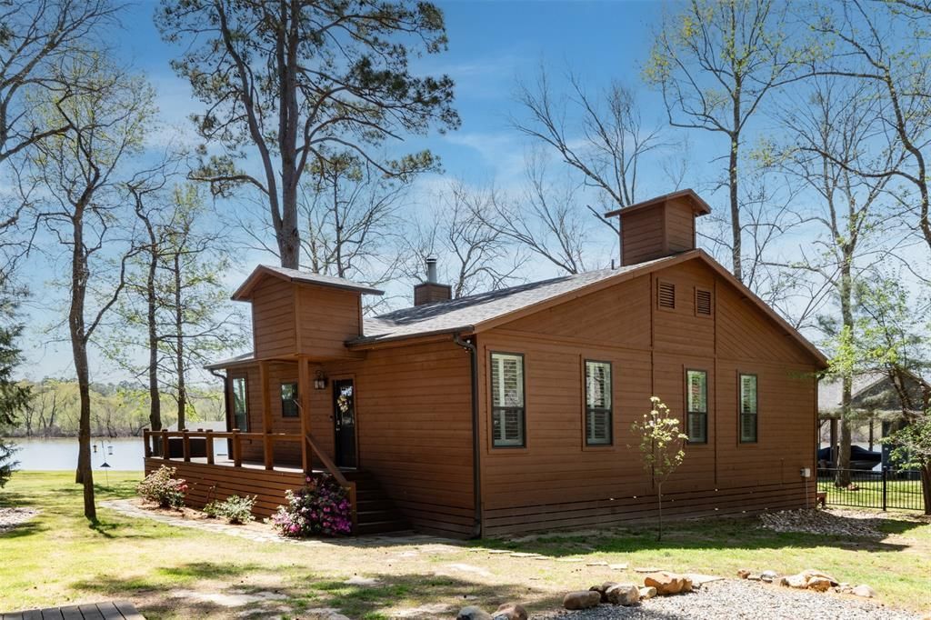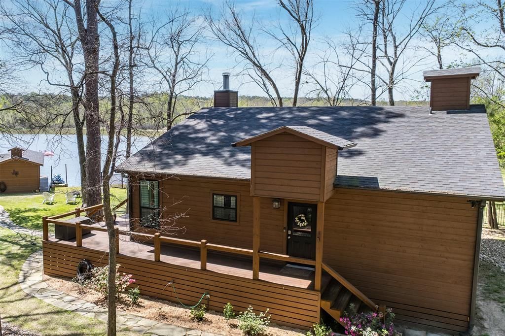 Lakeside living at its finest awaits in the exclusive, gated Eagle Point community on Lake Cypress Springs. Tucked beneath a canopy of beautiful, mature trees, this meticulously maintained 3-bedroom, 2-bath retreat offers the perfect balance of comfort, privacy, and effortless lake life. Inside, expansive lakeside windows invite in natural light and frame serene water views, creating a warm and welcoming atmosphere throughout. The thoughtful layout features a peaceful primary suite with a private ensuite bath, while the two additional bedrooms are connected by a convenient Jack-and-Jill bath ideal for family and guests alike. The kitchen is both stylish and functional, showcasing quartz countertops, stainless steel appliances, and modern tile finishes, while designer touches continue into the beautifully updated bathrooms. A spacious deck offers the perfect setting for morning coffee or sunset gatherings, while the boathouse with a sunning deck invites endless days of boating, fishing, and relaxing by the water. An above-ground lakeside fire pit creates a natural gathering place for evenings by the water, and a movable pellet stove adds flexibility for cozy nights under the stars. Set on a secluded, wooded homesite with a fenced perimeter and a solar-powered gate with battery backup, this property offers both privacy and peace of mind, further enhanced by an additional wooded lot across the street. Nature lovers will delight in frequent wildlife sightings, from deer and foxes to eagles and native birds. Additional features include a spacious three vehicle carport with enclosed storage, plus an air-conditioned bonus space perfect for a home office, fitness room, or extra sleeping quarters. A generator, dedicated boat slip, and jet ski dock add to the home’s thoughtful conveniences. Just a short, scenic drive from DFW, this inviting lakeside escape offers the ideal blend of relaxation, recreation, and refined simplicity ready to be enjoyed from the moment you arrive.